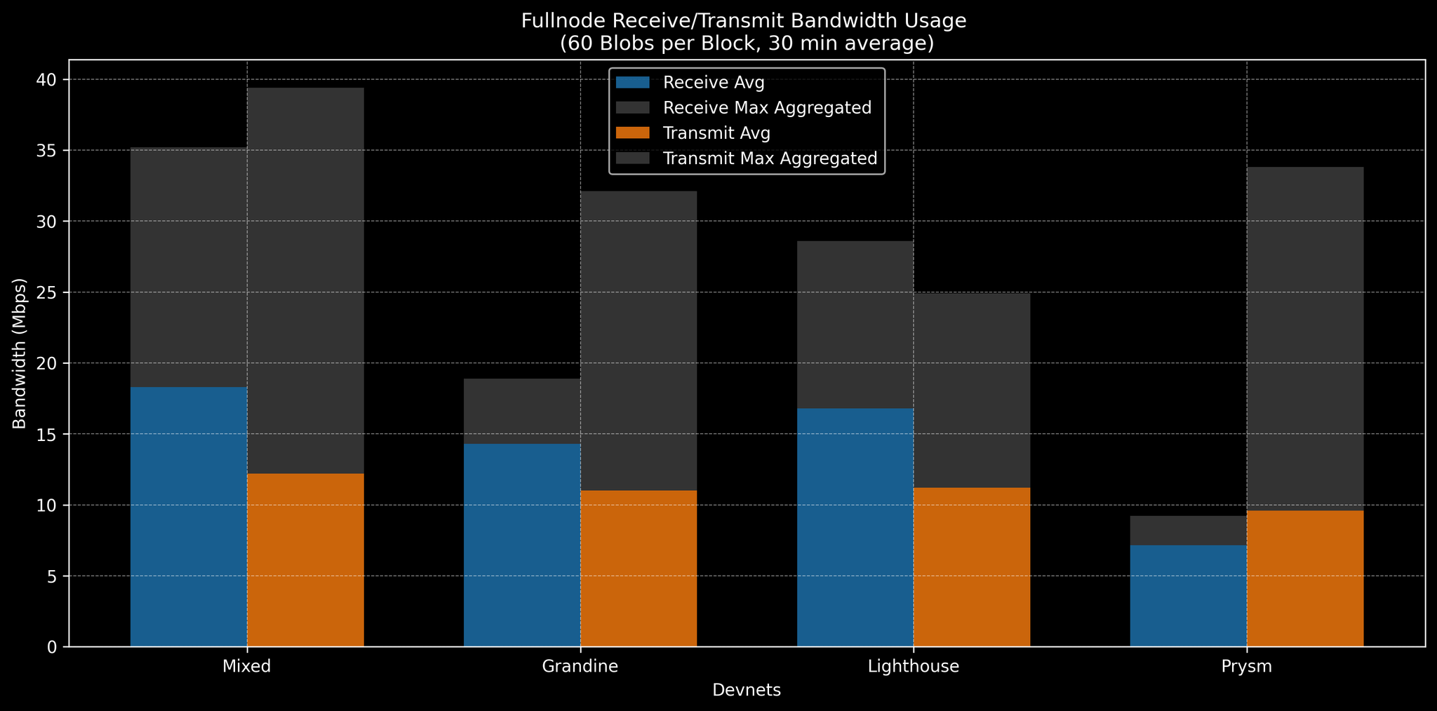 混合 Devnet 和单个 CL Devnet 的 60 个 blob/区块下的 Fullnode 带宽基准