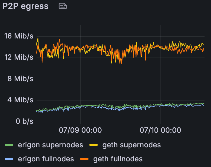 我们可以清楚地看到,Erigon 的入站远高于 Geth,而出站远低于 Geth。看起来它们的角色是相反的。