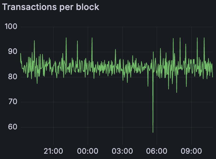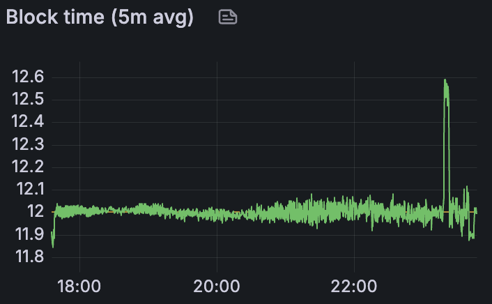 值得注意的是,Grandine Devnet 在 ~84 个 blob/区块的情况下运行了超过 16 个小时(一夜之间),没有任何明显的故障或降级。这在一定程度上是偶然的(测试仍在运行),但它提供了一个有价值的数据点:至少某些客户端组合可以可靠地将 blob 吞吐量推到非常高的水平,并持续很长时间。