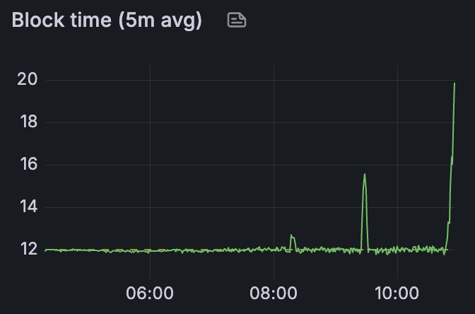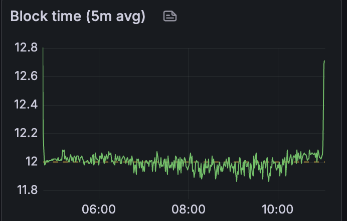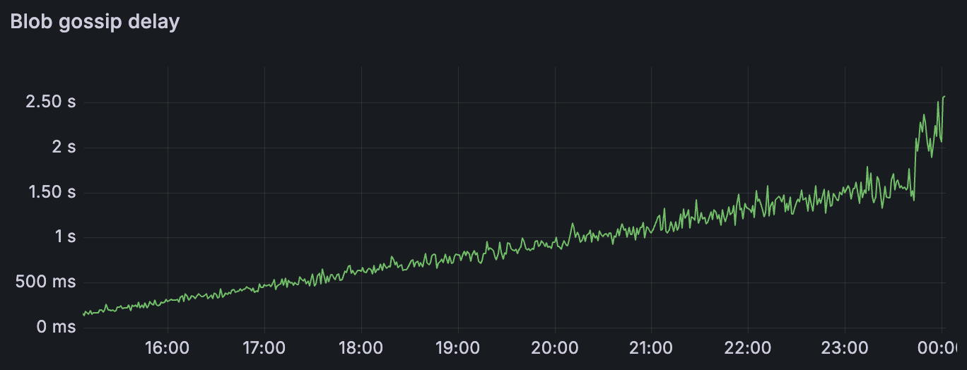 我们可以观察到,上述指标保持在合理的时间范围内,这允许在网络中进行适当的 blob/区块传播。