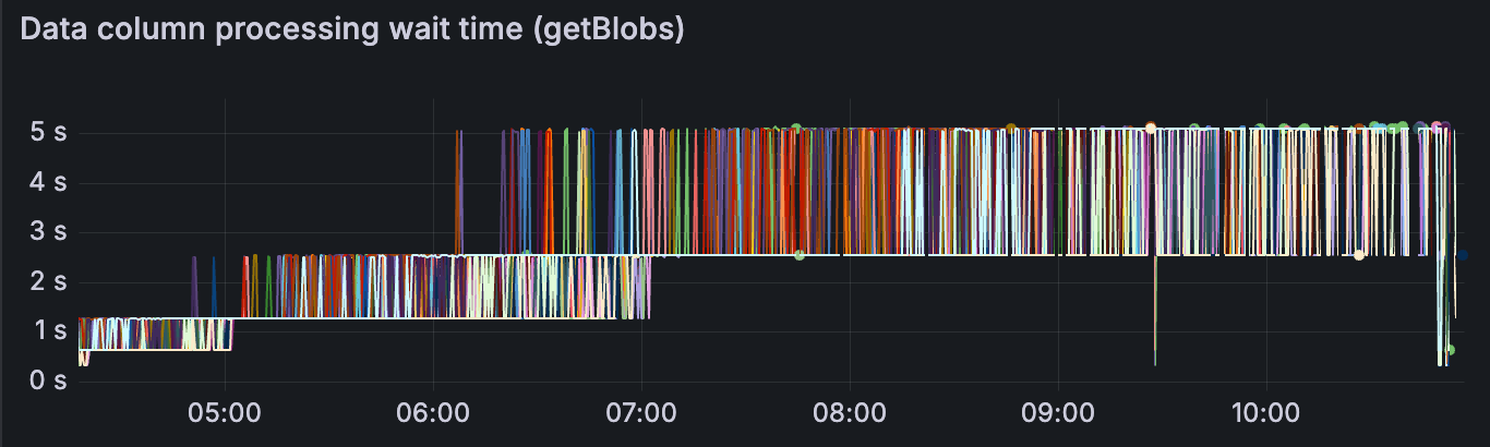 该指标也与带有 getBlobs 的 devnet 中记录的数据列处理等待时间一致。