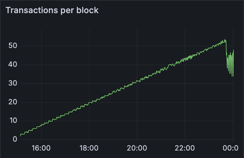在 nethermind 中,我们观察到大约 45 个 blobs/区块,直到网络变得不稳定。