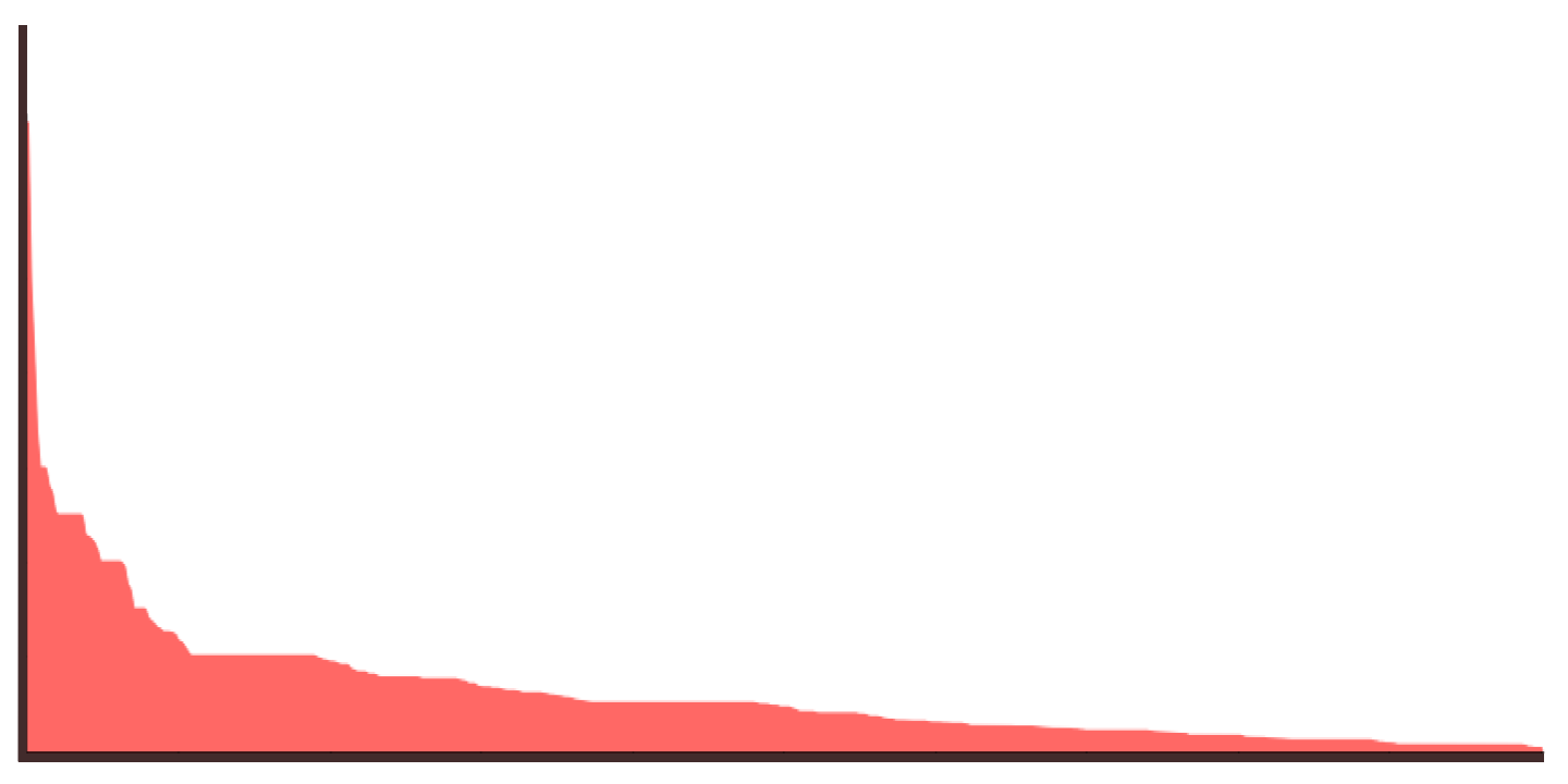 我们可以放大到前 10% 项目以下的分布,看到很多项目聚集在某些水平上。