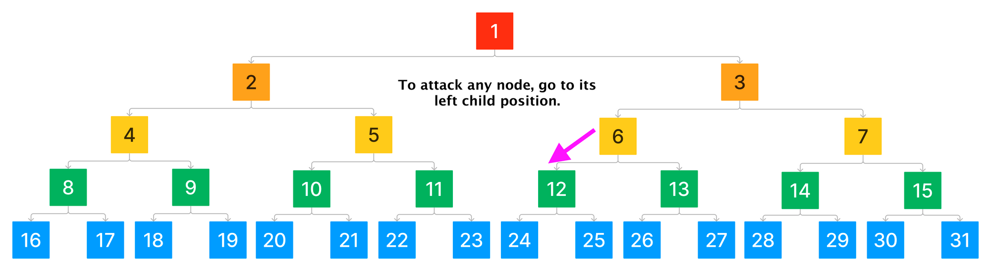 攻击类似于相对于被攻击的声明遍历到左子位置。这使我们到达一个位置,该位置承诺父位置所承诺的轨迹的一半。
