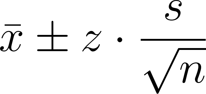 x̄ ± z · (s / √n) = 72 ± 1.96 · (8 / √100) = 72 ± 1.568