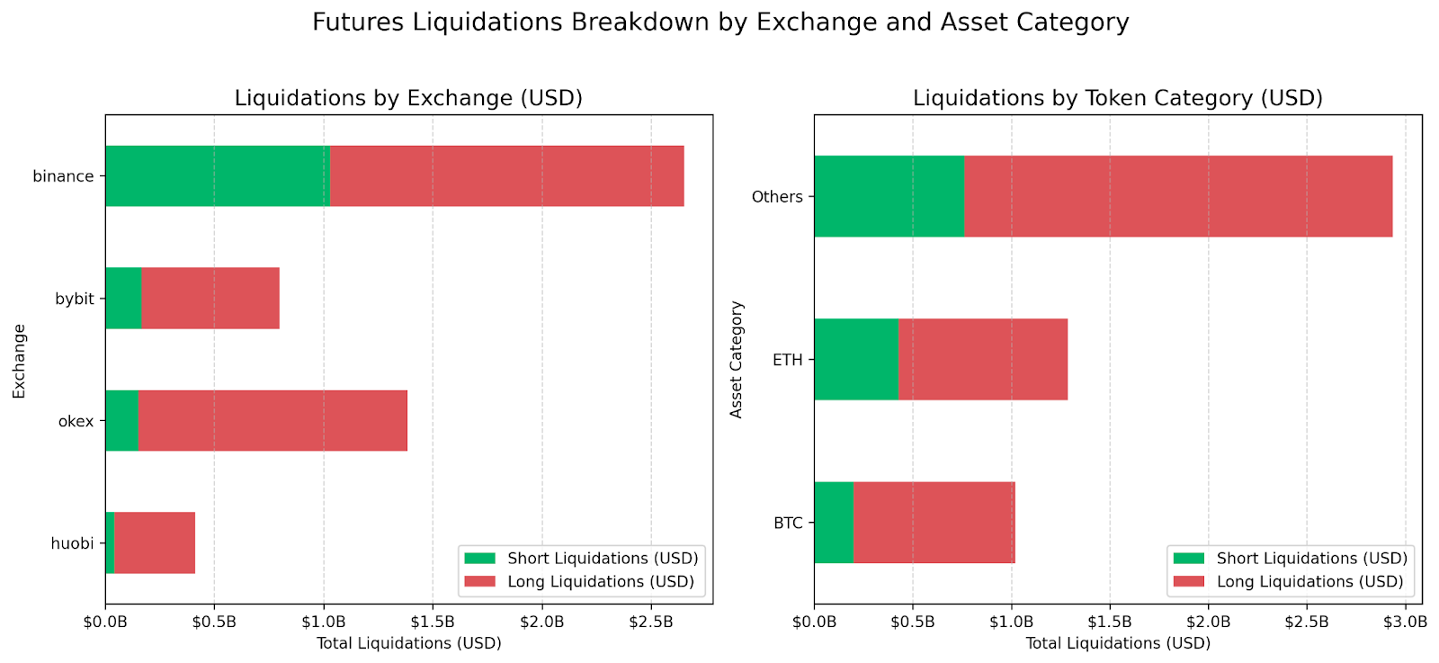 当天,总清算额达到超过 50 亿美元,大约是 3 个月平均值 3 亿美元的 17 倍,成为近期记忆中最极端的强制平仓事件之一。