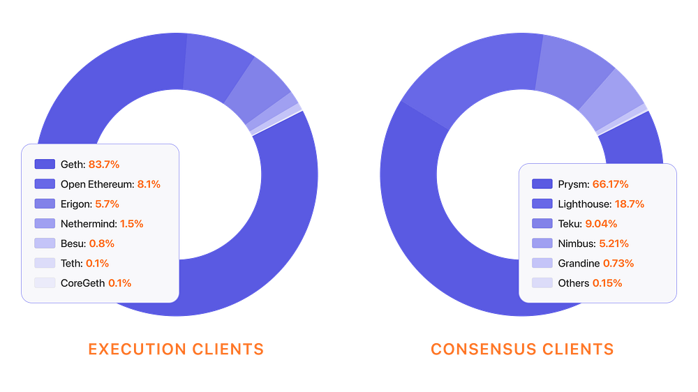 尽管少数客户端软件存在错误和停机时间,但在 Geth 作为超级多数客户端的情况下,对于以太坊质押者来说,它们在本质上比 Geth 的风险更小,这有点违反直觉。