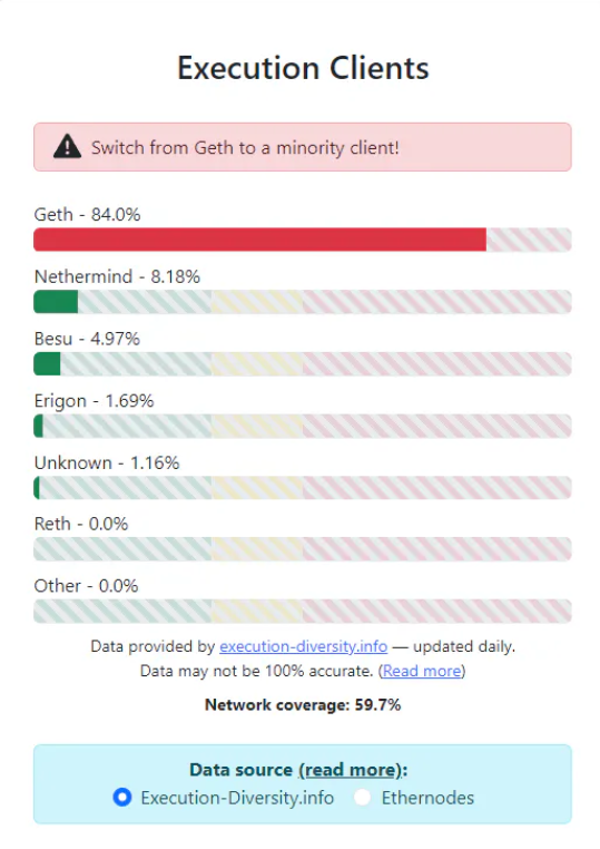 现在它们加起来还不到网络执行客户端的 12%,但是如果 Geth 遇到任何问题会发生什么?