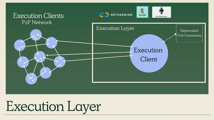 在以太坊网络中,执行层根据区块链的规则和协议执行智能合约并处理交易,而客户端软件使用户能够与区块链网络进行交互。