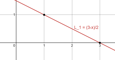 首先,让我们为点 (1,3) 创建中间多项式。 我们想要一个多项式,它: