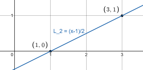 让我们通过一个具体的例子来完成这些步骤。 我们将再次使用点 (1,3) 和 (3,5)。