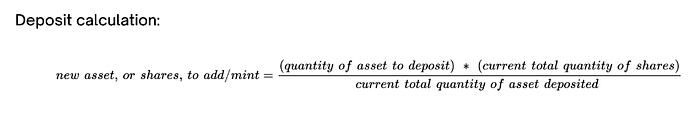 当用户将一定数量的资产存入合约时,他们会收到一定数量的新资产,或份额(share),该数量与存入的总资产成正比。这个份额可能是一个单独的代币,但在某些情况下,它只是一个内部状态变量。因此,份额与底层资产之间的关系是一个比率,其中分子是份额的总量乘以要存入的资产数量,分母是当前底层资产的总量。