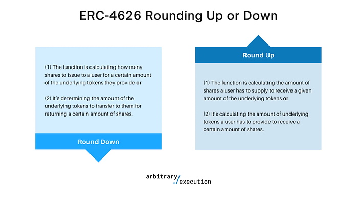 ERC-4626 标准对执行各种操作时以哪种方式进行舍入有非常具体的规定。 从 ERC-4626 标准 释义,指定的舍入方向如下:
