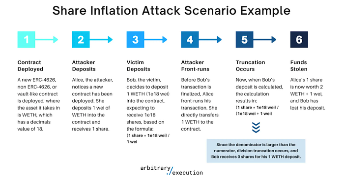 现在我们已经介绍了 ERC-4626 标准,并确定了符合 ERC-4626 的 vault 合约、非 ERC-4626 的 vault 合约和类 vault 合约之间的共同特征,我们可以讨论这些合约之间共有的漏洞。为了简单起见,当我在本文中提到智能合约时,我指的是所有这三类 vault 合约。