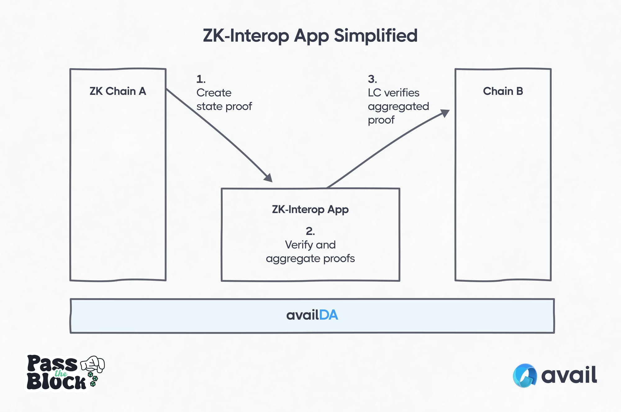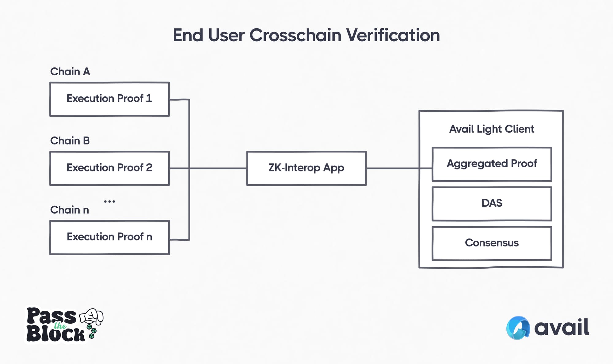 ZK-Interop App 的核心是验证和聚合来自多个链的状态证明到一个单独的 ZK 证明中。然后,用户可以使用 Avail 轻客户端验证聚合的 ZK 证明,以验证所有参与链的状态。这是一种用于跨链交易的最佳架构,因为去中心化网络中的每个用户(从个人到机构)都可以独立地验证交易,并确信来自运行完整节点的确定性,而无需信任任何个人或实体。