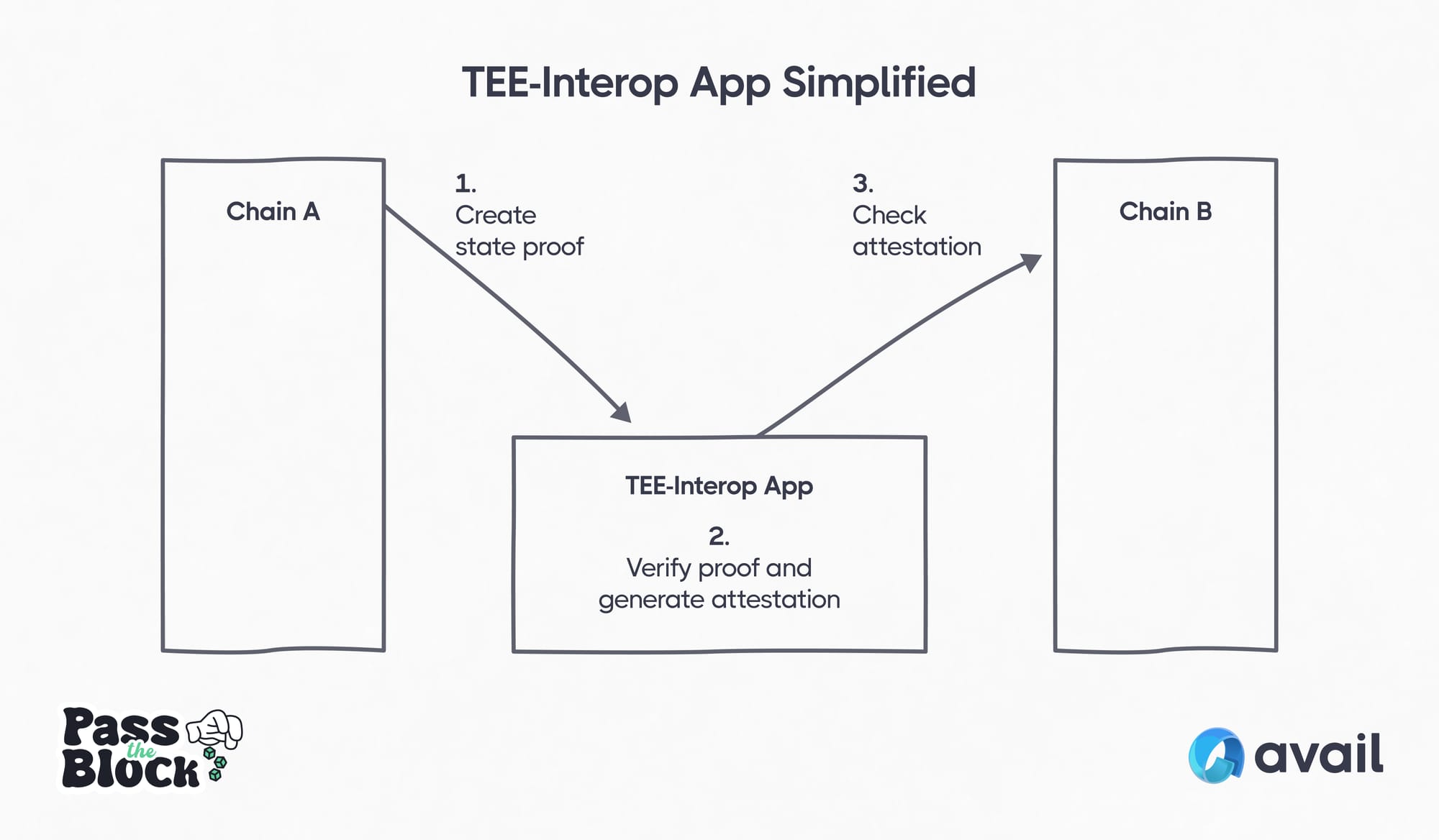 TEE-Interop App 使用可信执行环境(TEE),通过在安全硬件上运行来保护代码和数据免受恶意行为者的侵害。TEE-Interop App 验证来自参与链的状态,并生成用于结算交易的加密证明。