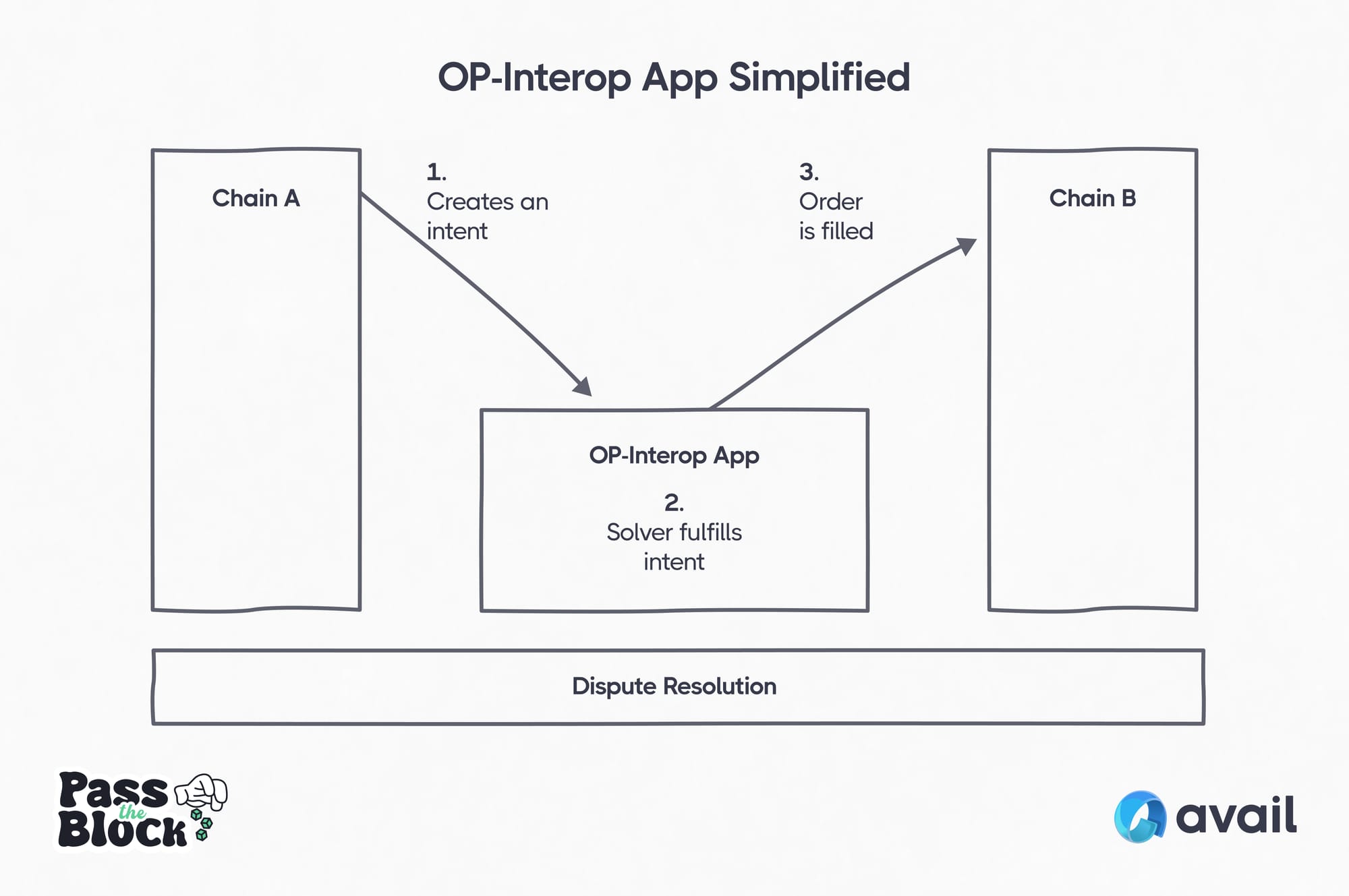 当用户使用 OP-Interop App 发起跨链交易时,将基于 ERC-7683 标准发布一个意图。该意图就像一张订单凭证,求解器会竞争来完成该凭证。求解器角色将随着时间的推移分散到社区,以便社区运营商(例如那些在 Symbiotic 上运行的运营商)可以作为 Avail Nexus 交易的求解器运行。