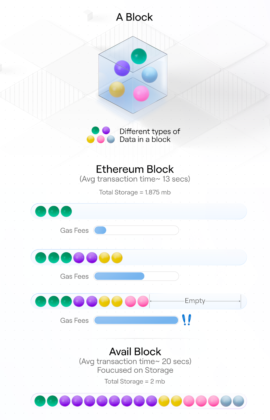 在同一个区块中结合执行、结算和数据可用性是单体区块链架构的核心问题。Layer-2 (L2) rollups 通过允许在单独的链上处理执行,开始了模块化区块链的运动,这些区块专门用于执行。Avail 通过解耦数据可用性,并允许链上的区块专门用于数据可用性,从而使模块化设计更进一步。