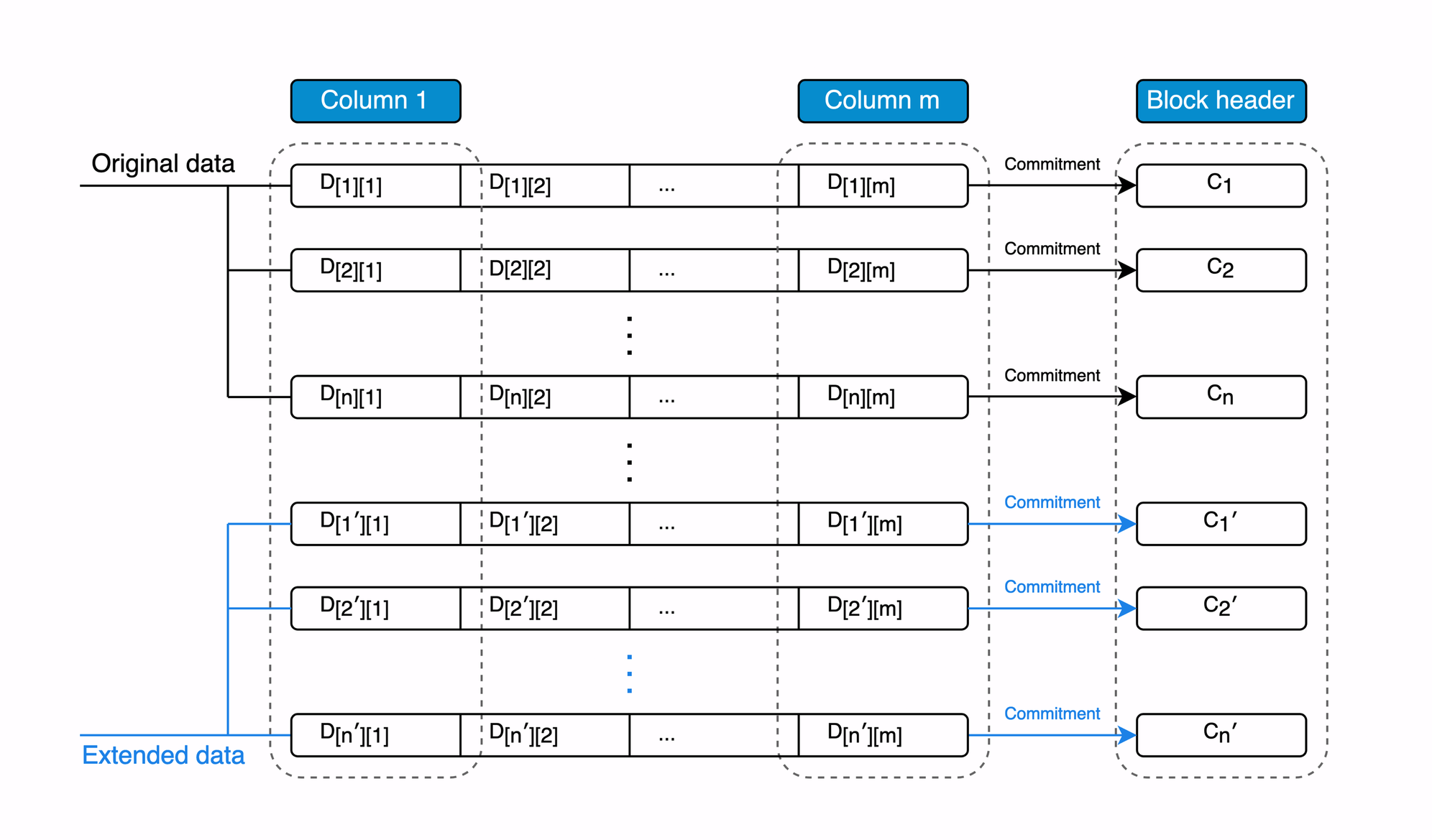 每个验证者重新创建整个区块是单体区块链中的默认设置。然而,这在像 Avail 这样的链上是不必要的,因为交易不被执行。因此,我们可以优化 Avail 的一种方法是允许验证者通过抽样而不是区块重现来达到他们自己对数据可用性的保证。这使得验证者所需的资源低于要求他们重现所有 commitments 的情况。更多内容将在以后的文章中介绍。