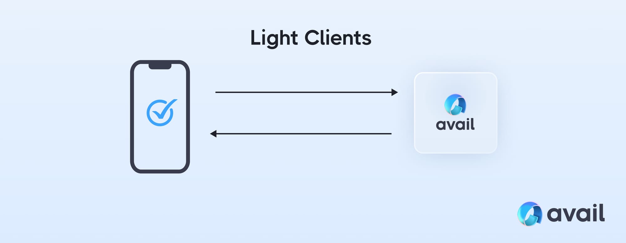 Avail DA 本身通过 随着需求增加区块大小 来扩展。它通过 Avail 的轻客户端 的支持来实现这一点,这是一个非常轻量级的软件,可以从 笔记本电脑、手机、树莓派 和 智能手表 验证有效性证明。Avail 轻客户端 从 Avail 的区块链中随机采样数据 并计算置信度分数,从而在每次连续采样中获得对所有数据可用性的信心。这提供了与完整节点相当的安全性。随着新的轻客户端加入,它们会加入轻客户端群,形成一个 P2P 网络. Avail 区块链本身以及这个 P2P 网络都 随着需求扩展,确保使用 Avail 的区块链可以继续扩展。