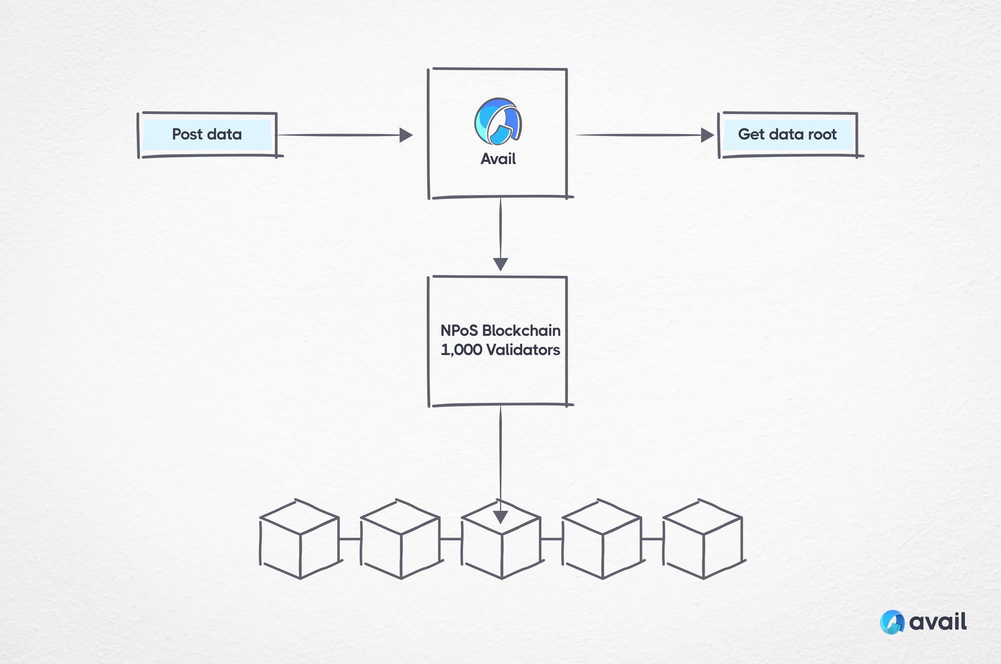 Avail 的提名权益证明区块链网络是使用 Polkadot SDK 构建的,以降低验证器中心化的风险,并支持多达 1,000 个外部验证器。数据由其他区块链发布在 Avail 的区块上,并由 Avail 网络验证,但不执行。