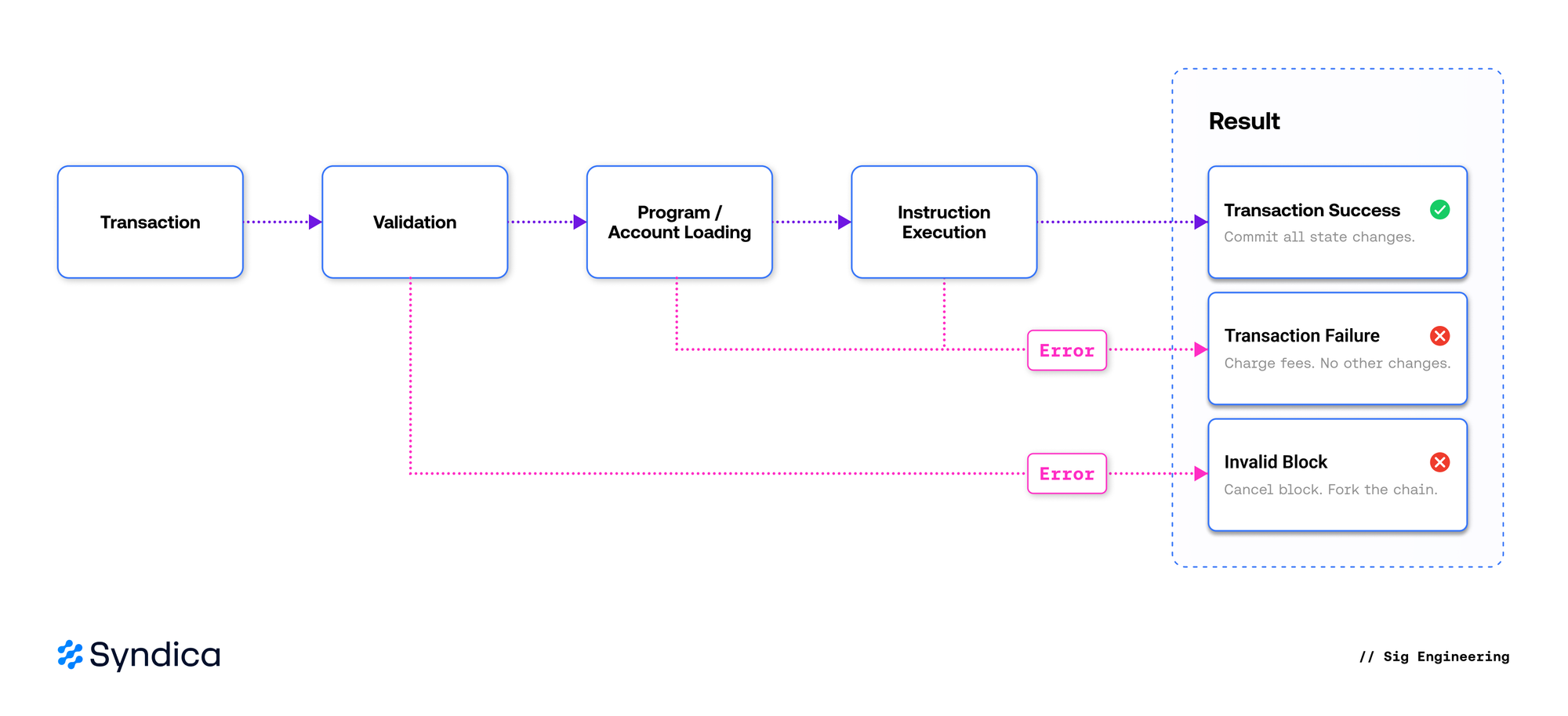 一旦交易被调度到一个线程,该线程就会运行 replayBatch 以处理其分配的交易。该函数通过将每个交易和账户传递到 executeTransaction 来委托给交易处理器,该函数输出执行交易的结果。