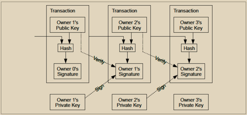 <figure><img src="https://img.learnblockchain.cn/masterbitcoin3/assets/4.1.png" alt=""><figcaption><p>图 4-1. 原始比特币论文中的交易链。</p></figcaption></figure>