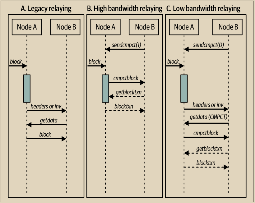 <figure><img src="https://img.learnblockchain.cn/masterbitcoin3/assets/10.2.png" alt=""><figcaption><p>图 10-2. BIP152模式比较(来自BIP152)。阴影条表示节点验证区块所需的时间。</p></figcaption></figure>