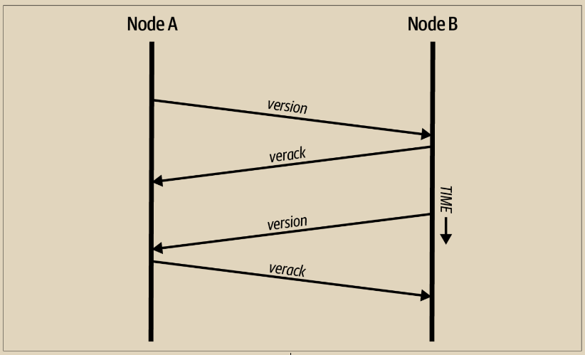<figure><img src="https://img.learnblockchain.cn/masterbitcoin3/assets/10.3.png" alt=""><figcaption><p>图 10-3. 对等方之间的初始握手</p></figcaption></figure>