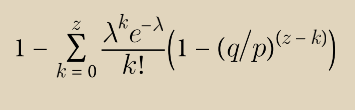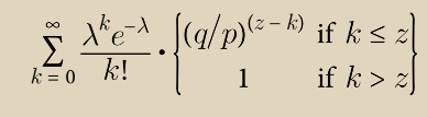 为了得到攻击者现在仍然有可能赶上的概率,我们将他可能已经取得的每一次进展的泊松密度与他从那一点上赶上的概率相乘: