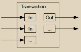 虽然可以单独处理硬币,但对于每一分钱都进行单独交易将会很不方便。为了允许价值的拆分和合并,交易包含多个输入和输出。通常情况下,会有一个较大的前一笔交易作为单一输入,或者多个输入合并较小的金额,最多有两个输出:一个用于支付,另一个将余额(如果有)退回给发送者。