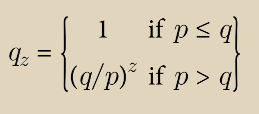 qz = 攻击者从 z 个区块落后赶上的概率