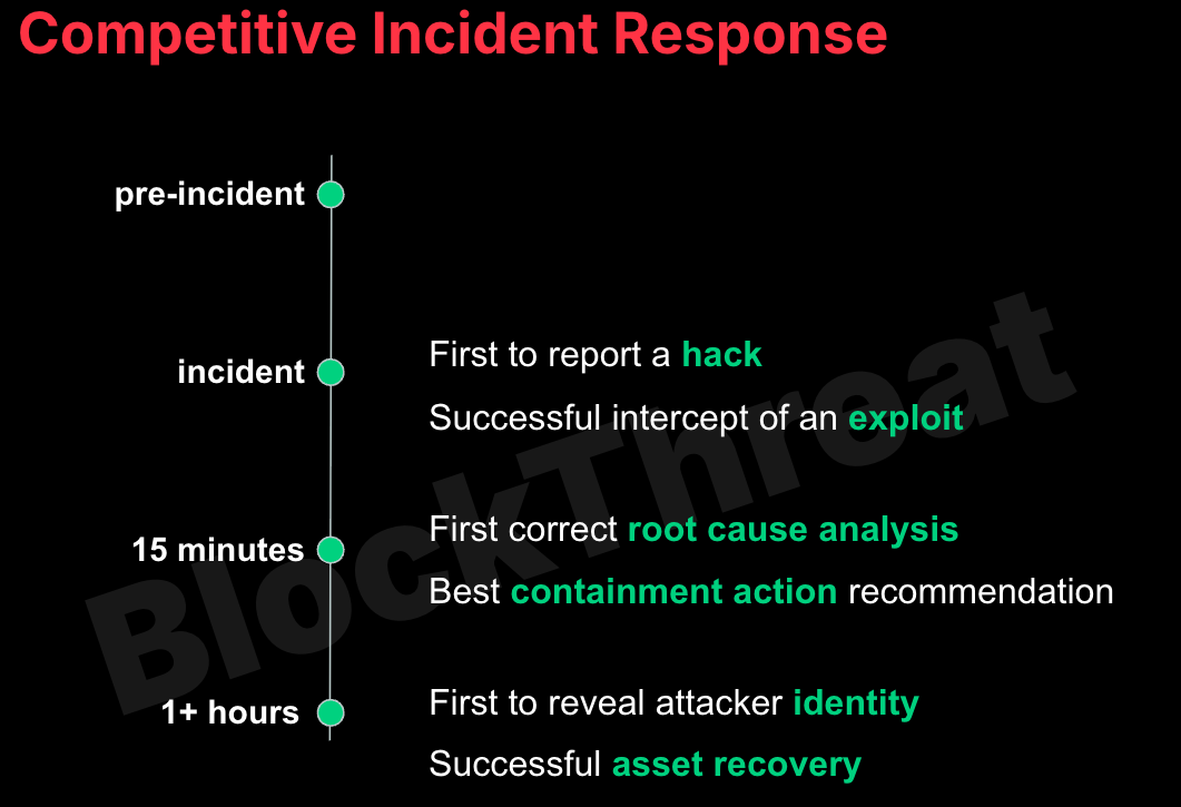 在正在发生的事件中,有一场识别根本原因的竞赛。这是一项时间极其敏感的任务,可能是成功控制或彻底灾难之间的区别。研究人员已经在社交媒体上竞争发布第一个准确的根本原因,那么为什么不激励第一个正确分析的赏金,并允许受影响的团队专注于控制和管理事件呢?想象一下,一个积极性很强的安全社区以我们在顶级安全竞赛中看到的相同精力投入到事件中。分析中节省的每一分钟都可以防止数百万美元的资产被盗。