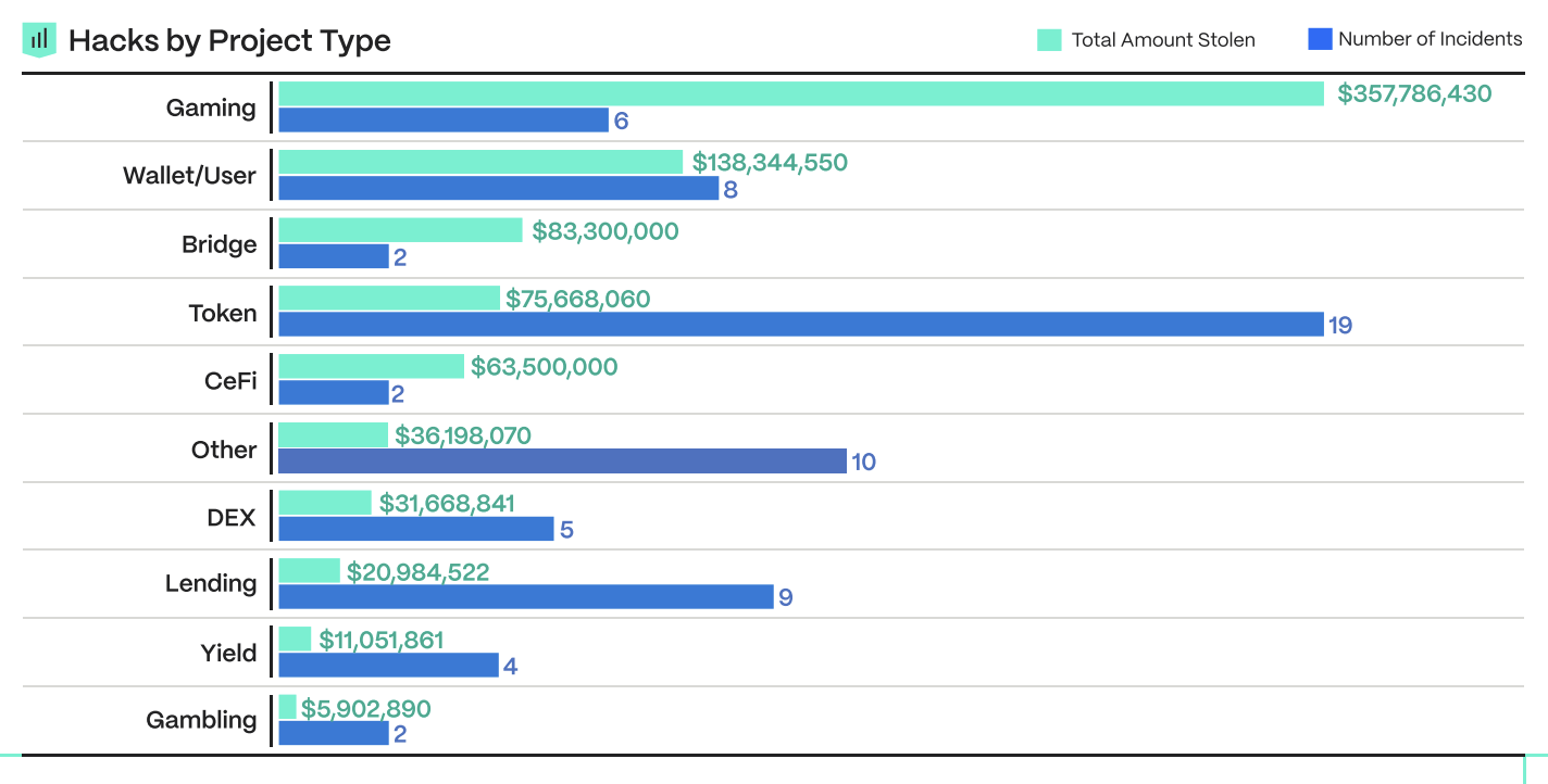 安全事件涵盖了从 tokens 到游戏平台和去中心化交易所的各种项目类型。这种多样性突显了整个 Web3 生态系统中普遍存在的安全威胁的本质。
