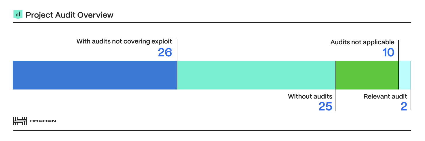 在第一季度,只有 44% 的 Web3 项目接受了智能合约审计,导致 56% 的案例中漏洞未得到解决。由于新的代码部署或升级,漏洞通常在审计后发生,这凸显了持续安全监控和更新审计范围的必要性。审计至关重要,但它们不能保证免疫;持续的监控和安全至上的方法对于风险缓解至关重要。
