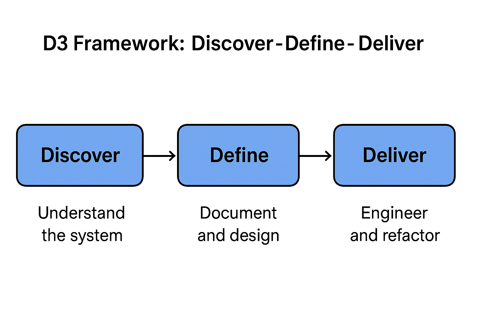 D3 流程:Discover → Define → Deliver 用结构化方式让 LLM 参与遗留系统的理解、文档重建与重构。