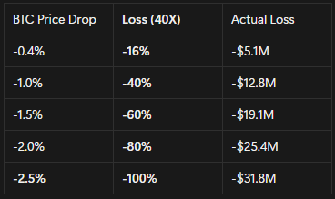 James Wynn 在 X (Twitter) 上实时分享了他的仓位和预测,成为一位非常杰出的交易员。2025 年 5 月 30 日至 31 日,Wynn 以 40 倍的最大杠杆率进入了 BTC Perp 期货多头仓位。他的仓位规模为 11,588 BTC,清算了 949 BTC,导致损失 9930 万美元 [ii]。