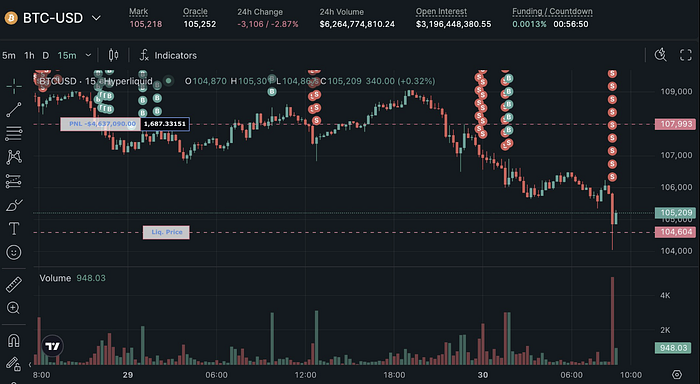 [iv] COINTELEGRAPH, “Hyperliquid 鲸鱼在比特币跌破 $105K 后损失近 $1 亿美元” (2025.5.30), https://www.tradingview.com/news/cointelegraph:3e23f3dd7094b:0-hyperliquid-whale-losses-near-100m-after-bitcoin-dips-below-105k/#:~:text=The first position of 527,the Hyperliquid analytics platform Hypurrscan
