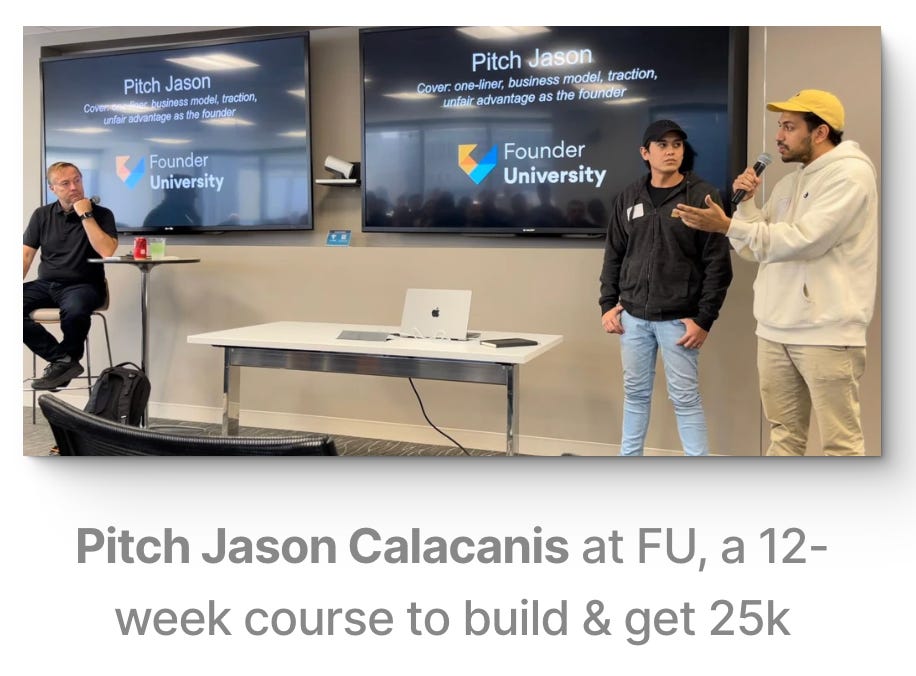Castillo 和商业伙伴 Gino Guatavita 在 Founder University(一个由 LAUNCH 和 Calacanis 支持的“预加速器”)上向播客主持人 Jason Calacanis 做宣传。目前尚不清楚 Castillo 和 Guatavita 当时推销的是什么业务。