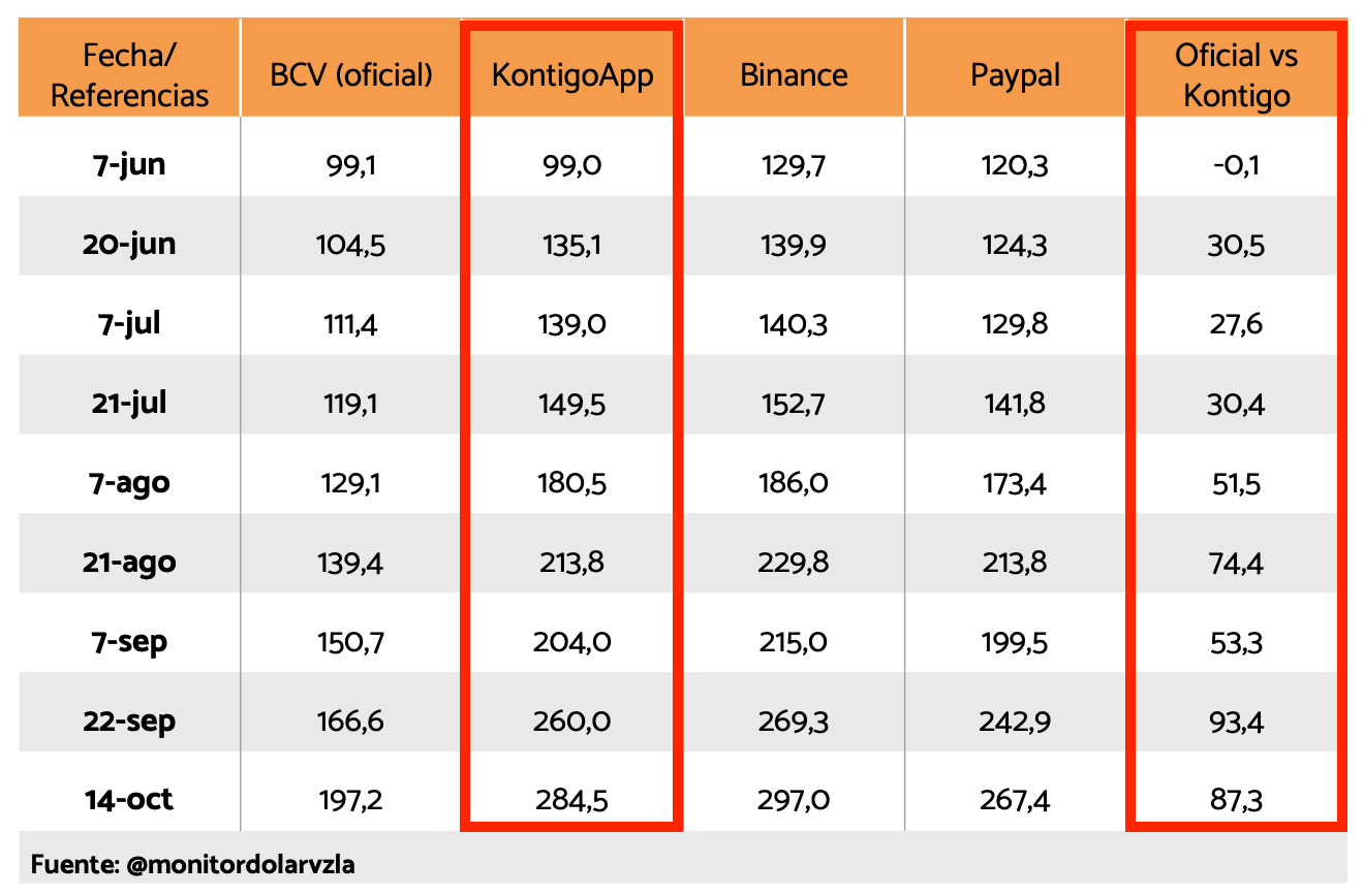 Transparencia Venezuela 的一份报告声称记录了汇率差异,Kontigo 和其幕后人士最终从中获利。