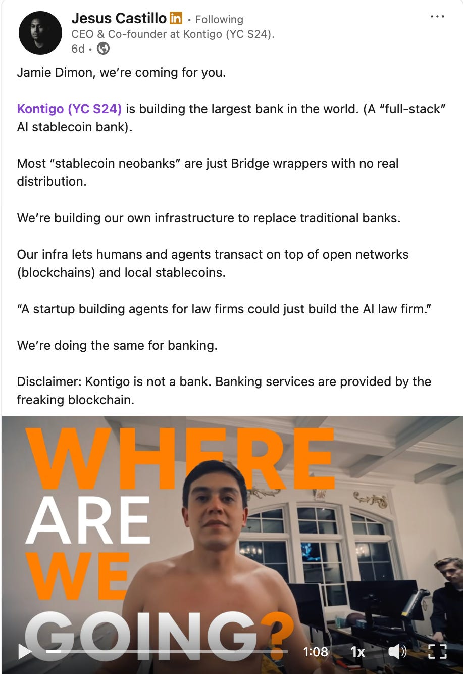 Kontigo 联合创始人兼首席执行官 Jesus Castillo 在 2025 年 12 月发布的社交媒体帖子和“宣传视频”