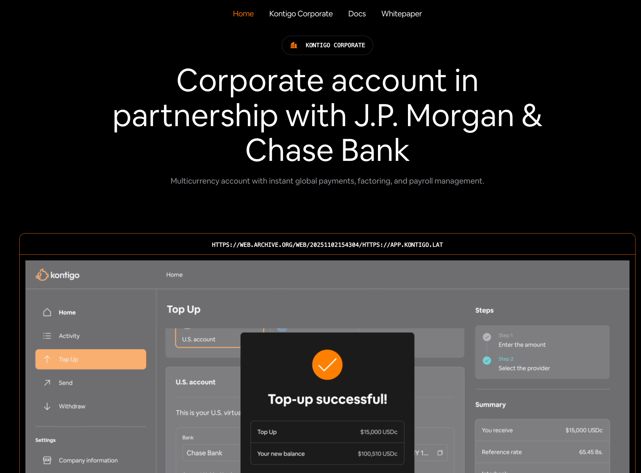 虽然 Blindpay 似乎在 2025 年 8 月引起了摩根大通的注意,但该银行似乎 没有 注意到更大的风险,Kontigo。