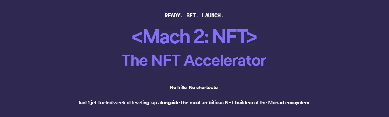 Monad Mach 2 是一个为 Monad 生态系统中的 NFT 构建者设计的加速器计划,提供一对一指导、研讨会和大师班。共有 80 个 NFT 项目入选 Monad Mach 2,完整名单可在 Monad Eco X 官方帖子 中找到。一些值得注意的项目包括: