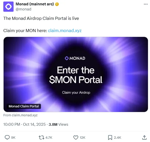 终于,大家期待的时刻即将到来。Monad 已于 10 月 14 日正式宣布其空投申领门户,用户之间的兴奋之情高涨。这并不奇怪,因为 Monad 在 2023 年第一季度宣布其种子轮融资时就获得了巨大的关注,但自那时以来,主网已经有两年半多的时间没有发布。