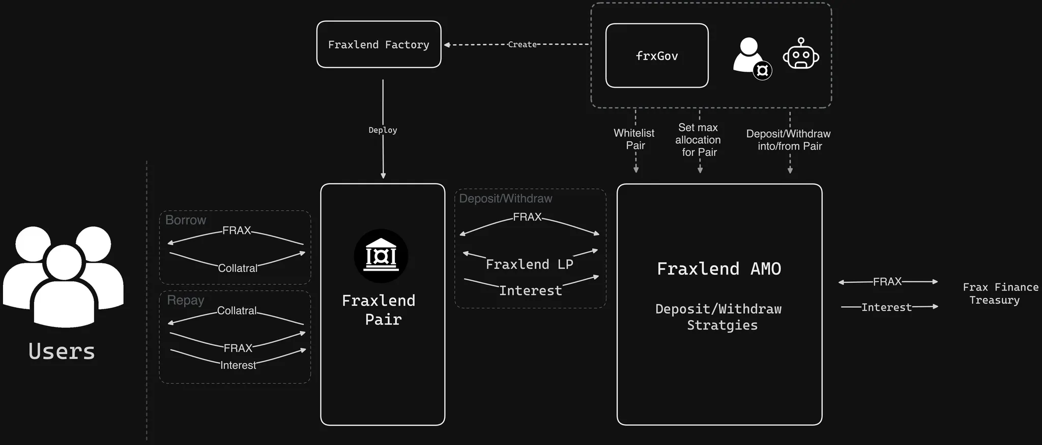 Fraxlend AMO: 向治理批准的借贷市场对提供新铸造的 frxUSD,并从借款人那里收取利息。