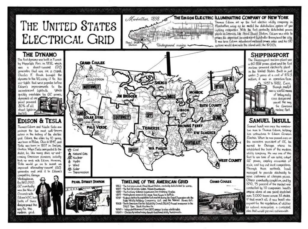 首先,必须建立“基础设施”。在爱迪生、特斯拉和威斯汀豪斯建造连接发电厂、输电线路和变压器的电网之前,工厂都是自己运营发电机,电力仍然效率低下。一旦电网建成,任何人都可以通过插入插座来使用电力,电力成为一种广泛使用的资源,极大地提高了生产力。