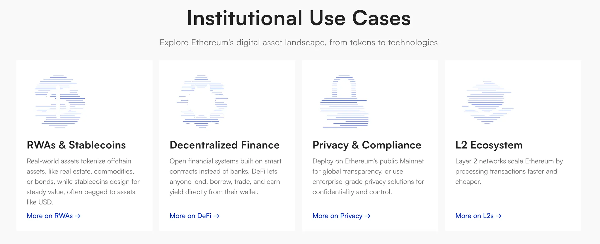 启动机构门户:在2025年1月底,以太坊基金会为机构投资者开设了一个官方网站,该网站提供有关安全架构,隐私技术,L2可扩展性以及RWA,稳定币和DeFi用例的全面指导。它特别强调了来自贝莱德,Visa和Coinbase的示例,帮助机构理解以太坊作为链上金融基础设施。