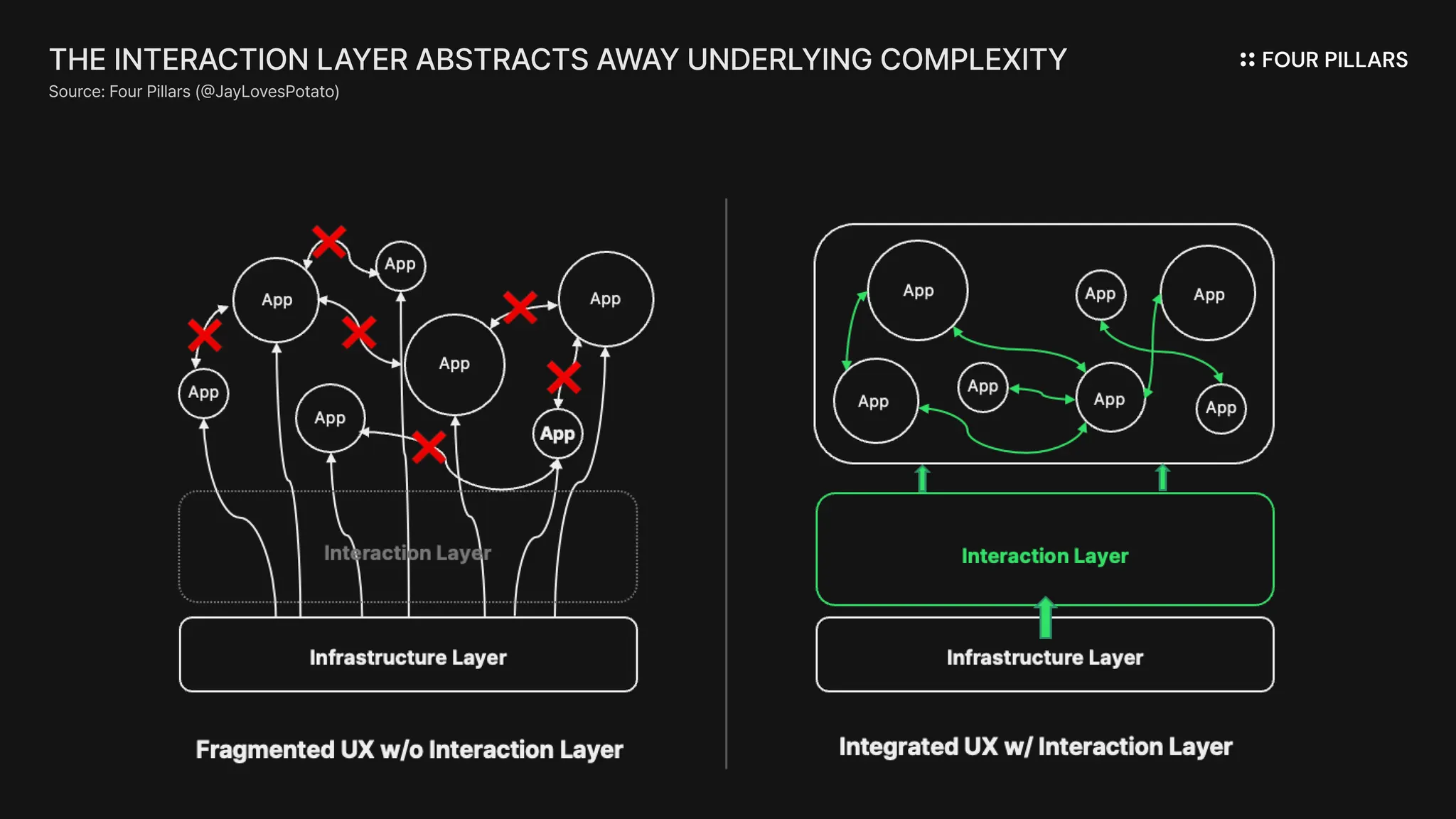 区块链遵循同样的轨迹。该技术有潜力在可信的数字网络上忠实地表示现实世界的价值,并重新定义金融互动。然而,在其早期阶段,有意义的使用极其困难;人们必须了解每一个内部机制——从共识结构到 gas 费用到签名方案。跨链交换数据或在单个协议中定义复杂的交互也是如此。开发人员实施了自己的碎片化标准,导致孤立的流动性、不一致的交互模型和不可避免的安全风险。