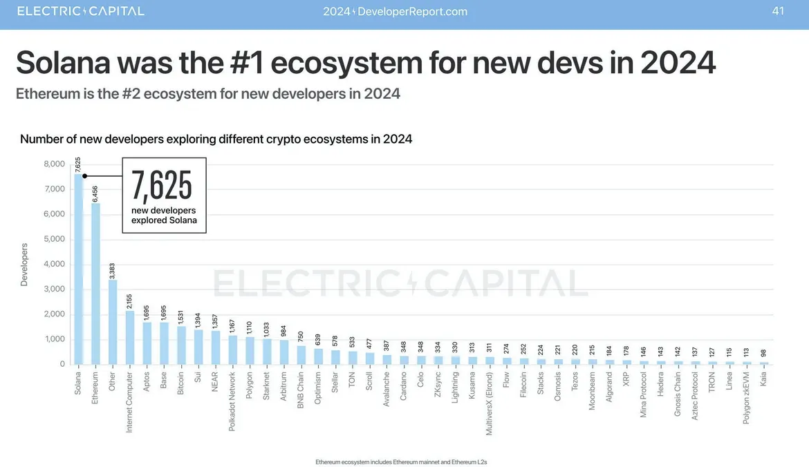 因此,Solana 每年都在新开发人员加入方面始终名列前茅,并且已成为机构参与者和应用程序构建者试验新形式创新的重要场所。这种势头巩固了 Solana 作为以太坊之后的第二大生态系统的地位——独特、快速增长且越来越具有自我维持能力。