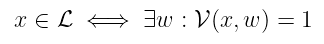 有了这些部分,我们可以提出以下内容:如果存在 多项式时间验证者 𝓥 和 多项式大小的证人 $w$,则语言 𝓛 在 NP 中,使得: